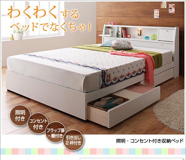 照明・コンセント付き収納ベッド Miana ミアーナ ラテックス入り国産ポケットコイルマットレス付き セミダブル