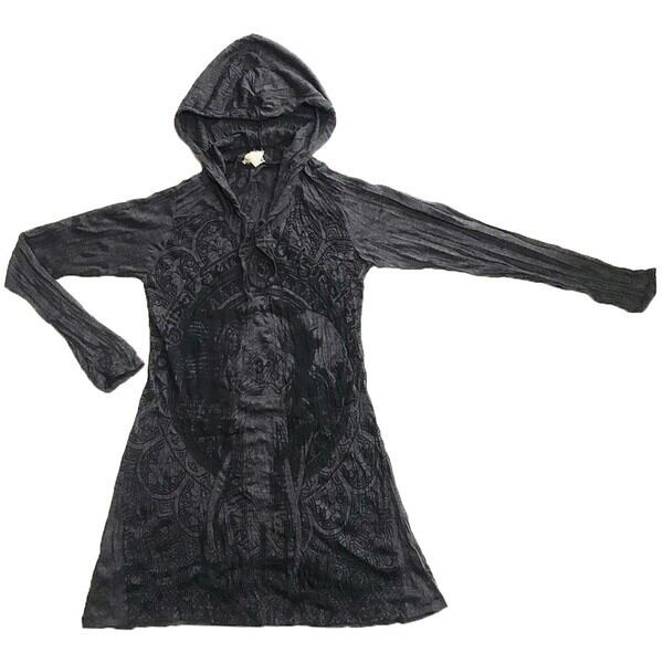長めの着丈で安心&スタイルアップオムプリントがエスニックなフード付き長袖チュニックカットソー アジアン Tシャツ ロンT 長袖Tシャツ チュニックワンピース