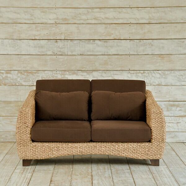 熟練した職人が一つ一つ丁寧に編み込んだウォーターヒヤシンスと 座り心地を考え抜いた5層ウレタンクッションを使用した「MITRA」の2人掛けソファ。